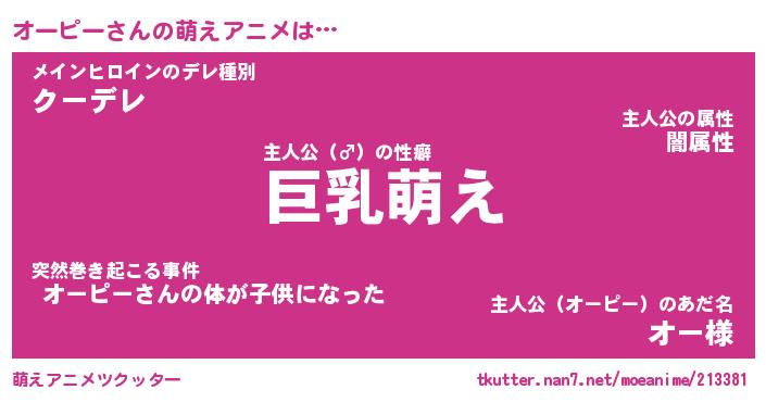 | 男性向けラノベタイトル風あだ名 | 『オーピーの憂鬱』 |