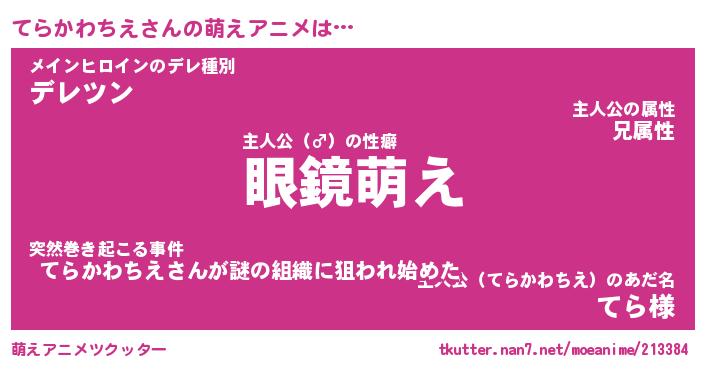 | 男性向けラノベタイトル風あだ名 | 『てらかわちえの憂鬱』 |