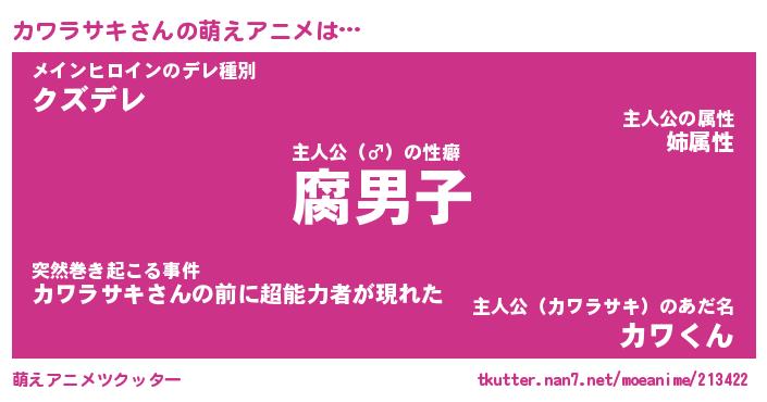 | 男性向けラノベタイトル風あだ名 | 『カワラサキアートオンライン』 |