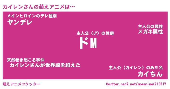 | 女子向けラノベタイトル風あだ名 | 『(仮)カイレンのやんごとなき事情』 |