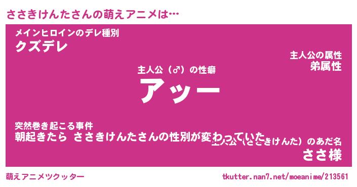 | 肩書あだ名 | 『ささきけんた御曹司』 |