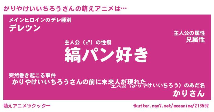 | 男性向けラノベタイトル風あだ名 | 『かりやけいいちろうの憂鬱』 |