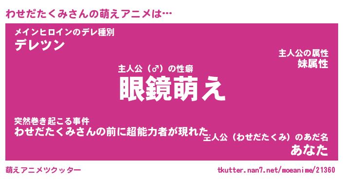 | 料理風あだ名 | 『節約★わせだたくみと油揚げの玉子丼』 |