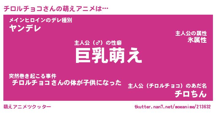 | 料理風あだ名 | 『節約★チロルチョコと油揚げの玉子丼』 |