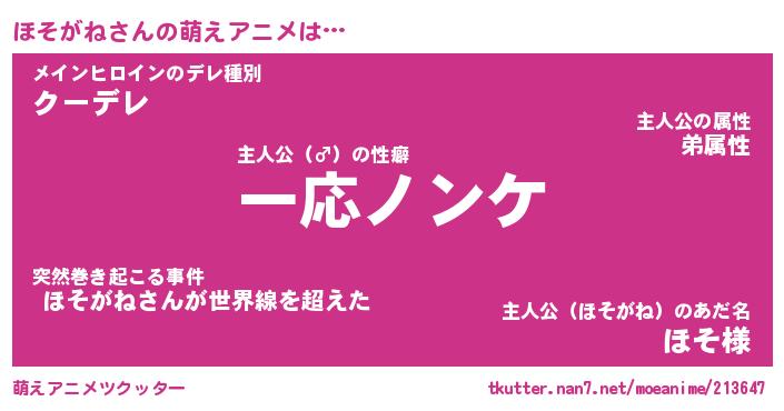 | 男性向けラノベタイトル風あだ名 | 『ホソガネアートオンライン』 |