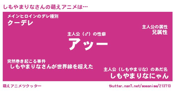 | 自動車の名前っぽいあだ名 | 『シモティマ』『シスラー』『シンR』 |