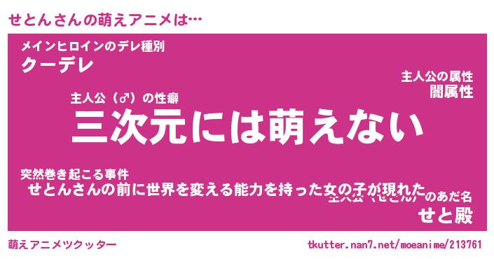 | 男性向けラノベタイトル風あだ名 | 『セトンアートオンライン』 |