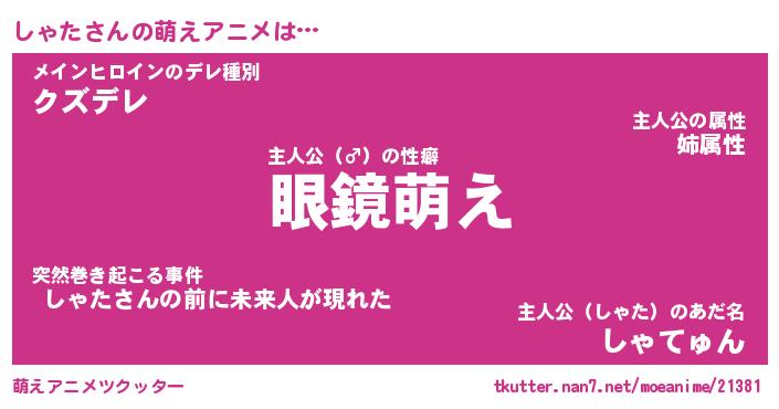 | 男性向けラノベタイトル風あだ名 | 『しゃたの憂鬱』 |