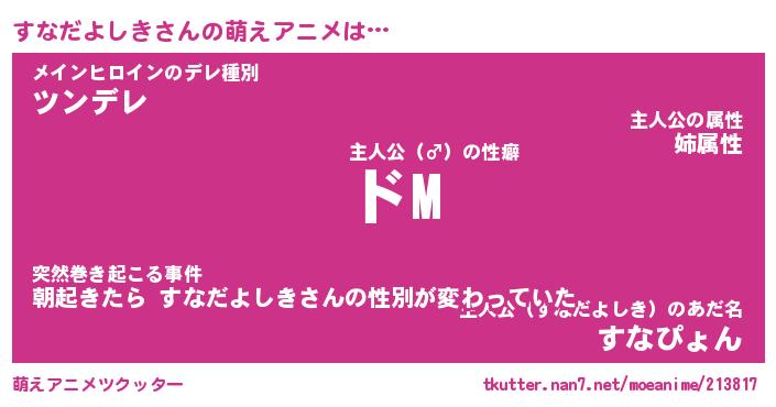 | ヘコむあだ名 | 『すなにー』『豆乳』『すなぷりん』 |