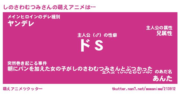 | 肩書あだ名 | 『しのさわむつみ御曹司』 |