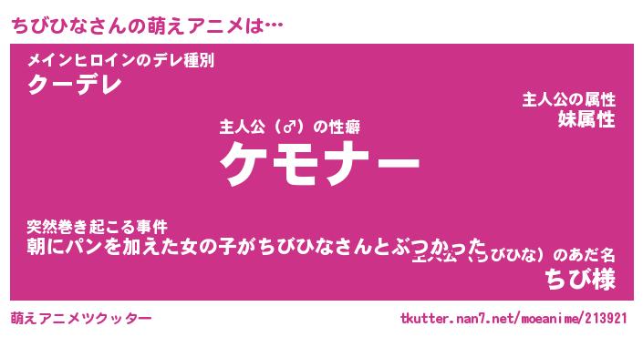 | 意味不明あだ名 | 『ペロリンちびひな』『永久保存ちびひな』 |