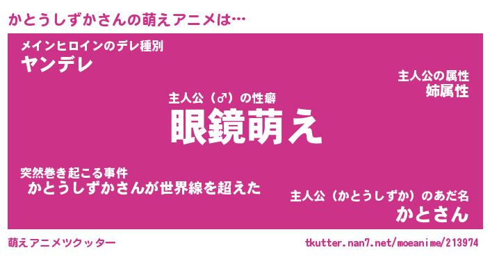 | 男性向けラノベタイトル風あだ名 | 『かとうしずかの憂鬱』 |
