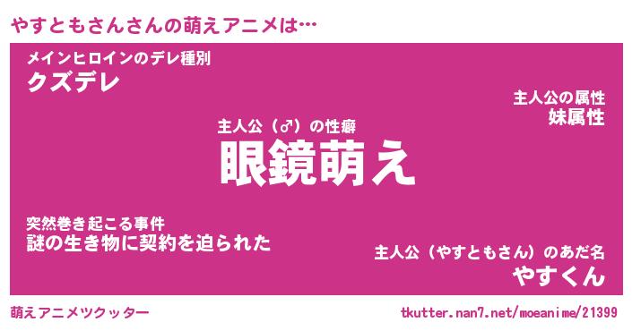| 男性向けラノベタイトル風あだ名 | 『やすともさんの憂鬱』 |