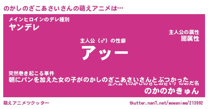 | 肩書あだ名 | 『のかしのざこあさい御曹司』 |