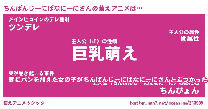 | 男性向けラノベタイトル風あだ名 | 『ちんぱんじーにばなにーにの憂鬱』 |