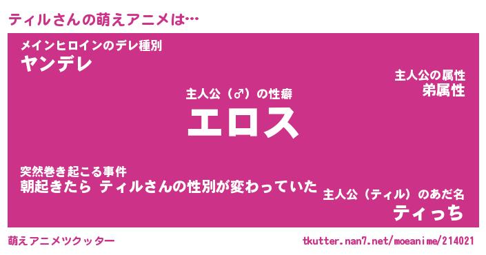 | 女子向けラノベタイトル風あだ名 | 『誰かこのティルを説明してください! ~契約から始まるウェディング~』 |