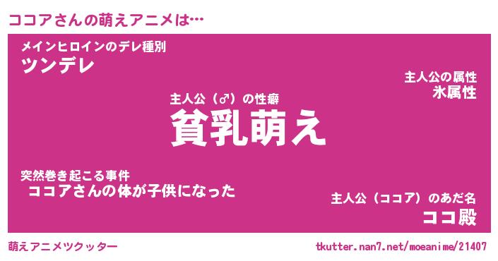 | 男性向けラノベタイトル風あだ名 | 『ココアの憂鬱』 |