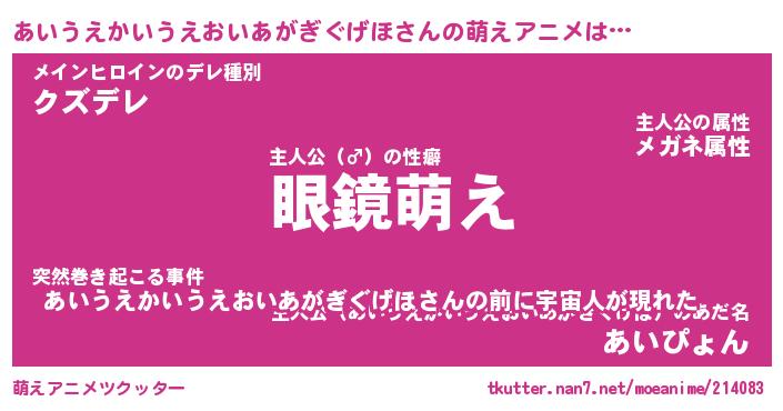 | 男性向けラノベタイトル風あだ名 | 『あいうえかいうえおいあがぎぐげほの憂鬱』 |