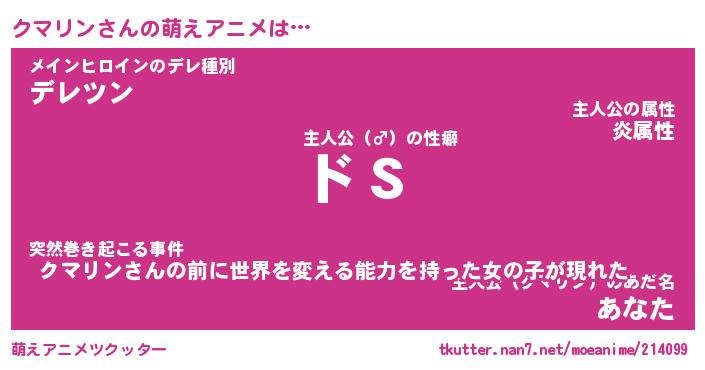 | 男性向けラノベタイトル風あだ名 | 『クマリンの憂鬱』 |