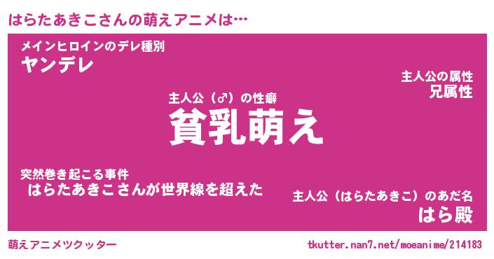 | 男性向けラノベタイトル風あだ名 | 『はらたあきこの憂鬱』 |