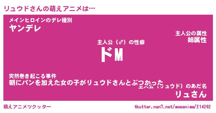 | 男性向けラノベタイトル風あだ名 | 『リュウドの憂鬱』 |