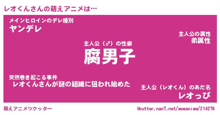 | ヘコむあだ名 | 『レオにー』『つくし』『レオぷりん』 |