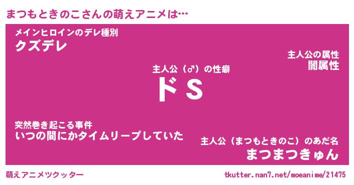| 男性向けラノベタイトル風あだ名 | 『まつもときのこの憂鬱』 |
