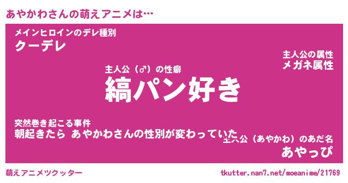 | 男性向けラノベタイトル風あだ名 | 『あやかわの憂鬱』 |