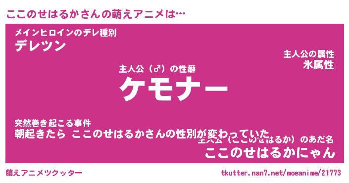 | 男性向けラノベタイトル風あだ名 | 『ココノセハルカアートオンライン』 |