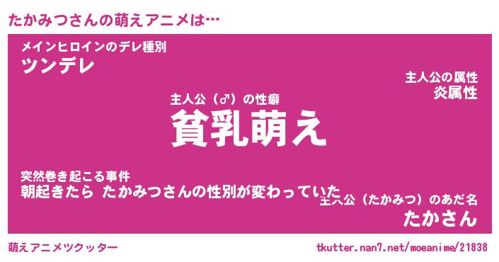 | 女子向けラノベタイトル風あだ名 | 『(仮)たかみつのやんごとなき事情』 |