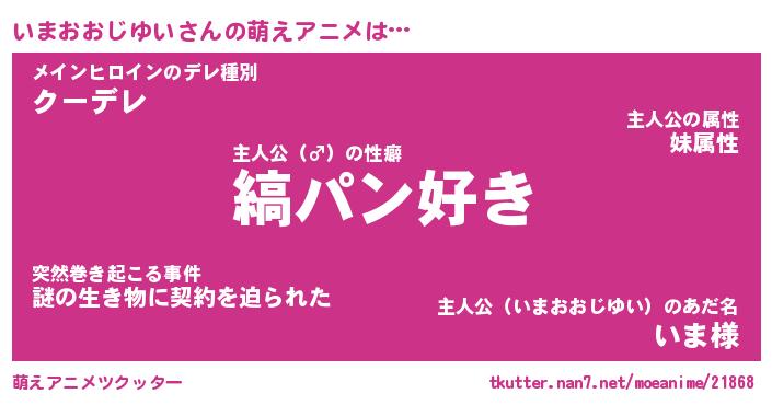 | 女子向けラノベタイトル風あだ名 | 『(仮)いまおおじゆいのやんごとなき事情』 |