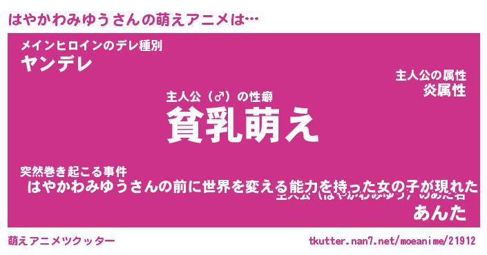 | 男性向けラノベタイトル風あだ名 | 『はやかわみゆうの憂鬱』 |