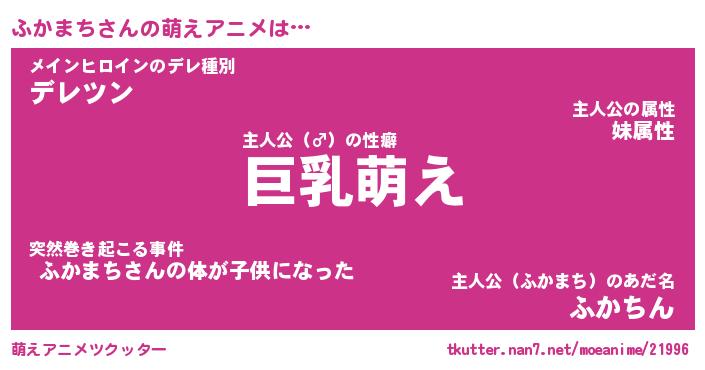 | 男性向けラノベタイトル風あだ名 | 『ふかまちの憂鬱』 |