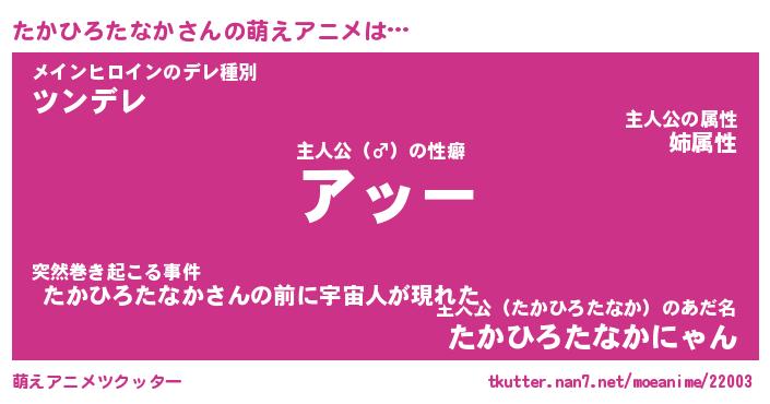 | 女子向けラノベタイトル風あだ名 | 『誰かこのたかひろたなかを説明してください! ~契約から始まるウェディング~』 |