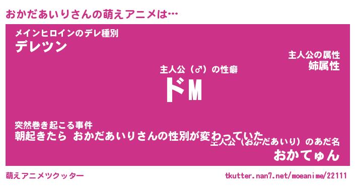 男性向けラノベタイトル風あだ名 | 『おかだあいりの憂鬱』 |