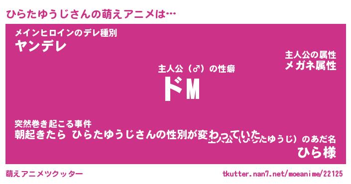 | 女子向けラノベタイトル風あだ名 | 『(仮)ひらたゆうじのやんごとなき事情』 |