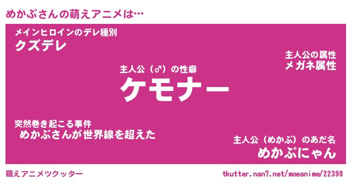 | ヘコむあだ名 | 『めかにー』『なまこ酢』『めかっぺ』 |