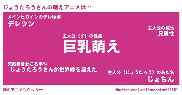 | 男性向けラノベタイトル風あだ名 | 『じょうたろうの憂鬱』 |