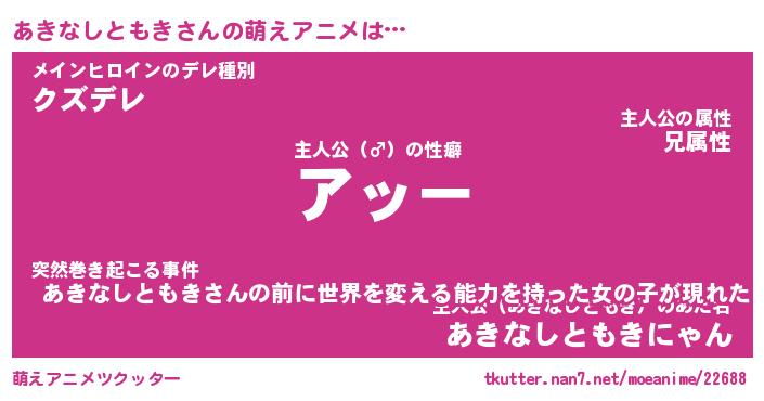 | 女子向けラノベタイトル風あだ名 | 『誰かこのあきなしともきを説明してください! ~契約から始まるウェディング~』 |