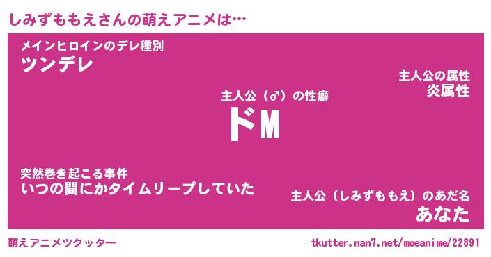 | 女子向けラノベタイトル風あだ名 | 『(仮)しみずももえのやんごとなき事情』 |