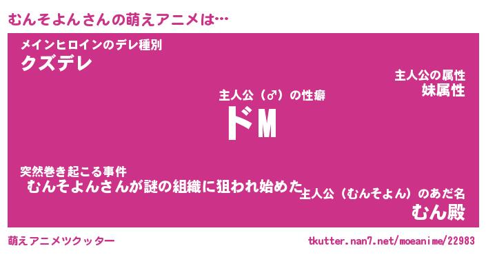 | 男性向けラノベタイトル風あだ名 | 『むんそよんの憂鬱』 |