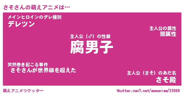 | 男性向けラノベタイトル風あだ名 | 『サソアートオンライン』 |