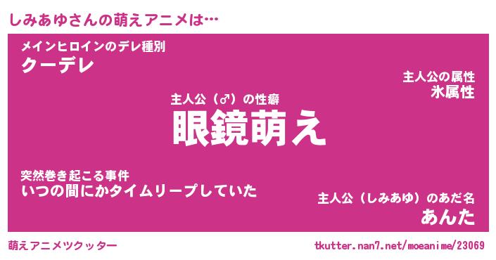 | 男性向けラノベタイトル風あだ名 | 『しみあゆの憂鬱』 |