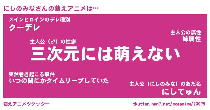 | 男性向けラノベタイトル風あだ名 | 『ニシノミナアートオンライン』 |