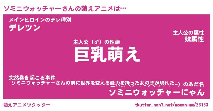 | 男性向けラノベタイトル風あだ名 | 『ソミニウォッチャーの憂鬱』 |