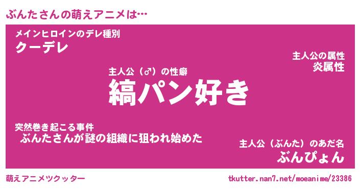 | 女子向けラノベタイトル風あだ名 | 『(仮)ぶんたのやんごとなき事情』 |