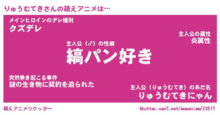| 男性向けラノベタイトル風あだ名 | 『りゅうむてきの憂鬱』 |