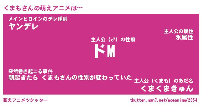 | 男性向けラノベタイトル風あだ名 | 『くまもの憂鬱』 |
