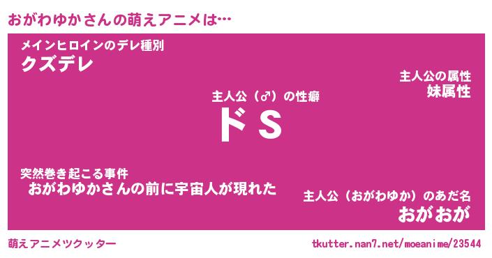 | 男性向けラノベタイトル風あだ名 | 『おがわゆかの憂鬱』 |