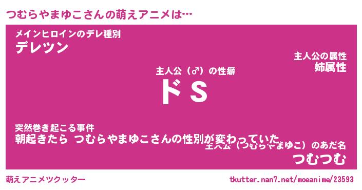 | 男性向けラノベタイトル風あだ名 | 『つむらやまゆこの憂鬱』 |